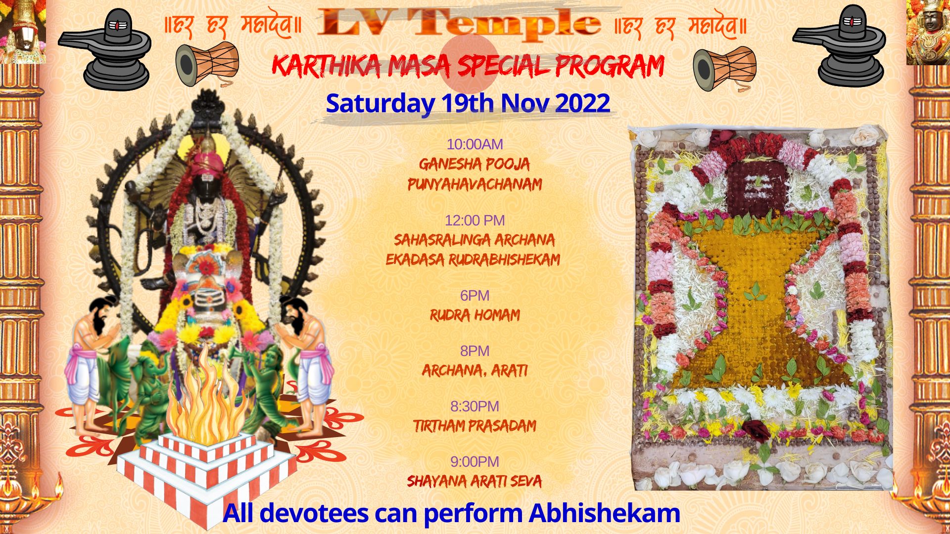 Karthika Masa Special Program – Sashara Lingarchana, Rudra Homam