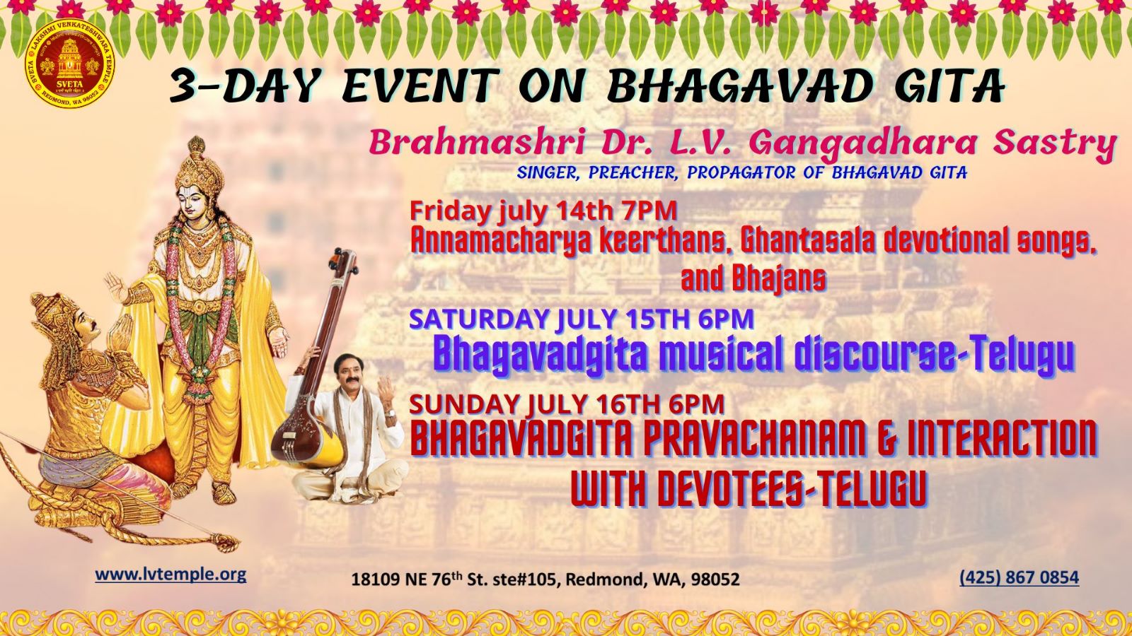 3-day program on Bhagavad Gita by Dr. L.V. Gangadhara Sastry