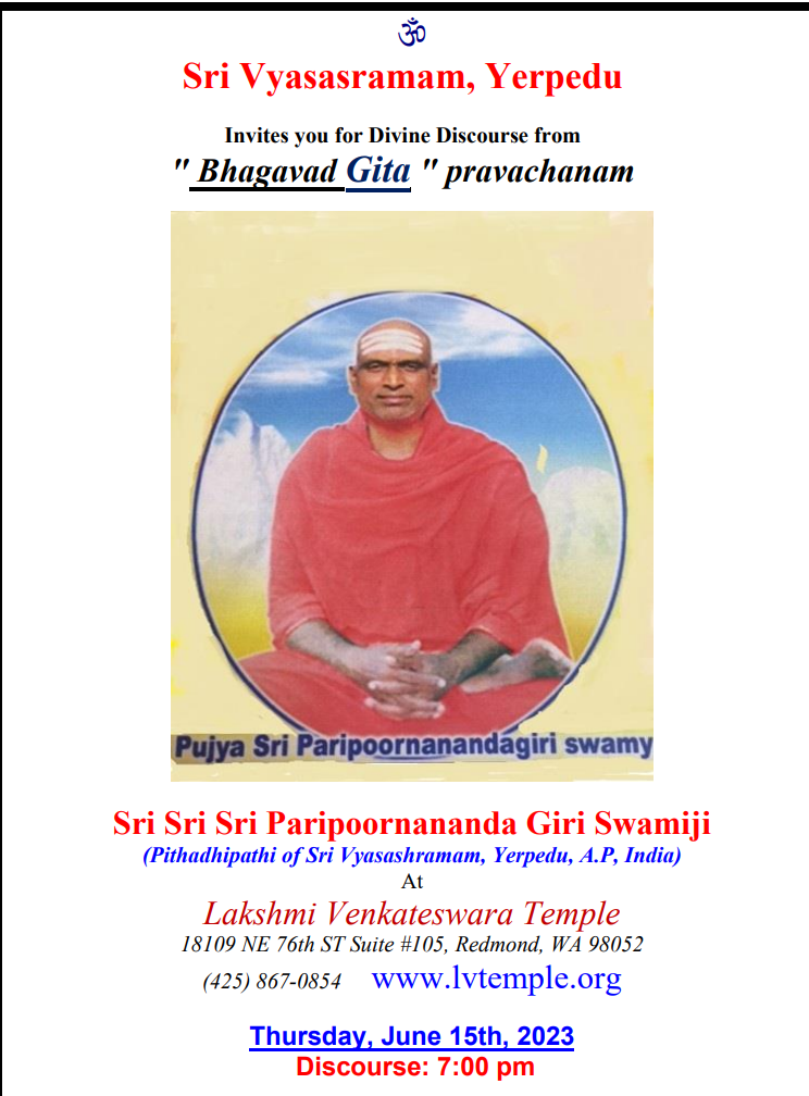 3-day program on Bhagavad Gita by Dr. L.V. Gangadhara Sastry
