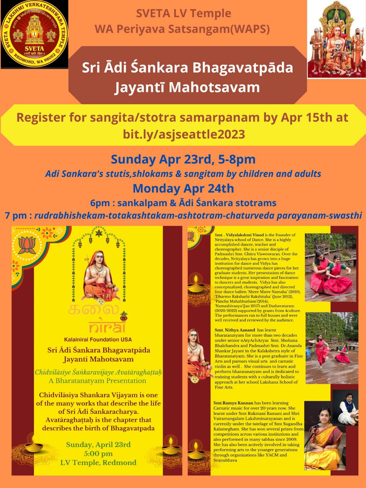 SVETA LV Temple Lakshmi Venkateswara Temple, 18109 NE 76th St, STE#105, Redmond, WA, United StatesSign up for samarpanam – Sangitam/nrityam/stotram/vaadyam at bit.ly/asjseattle2023